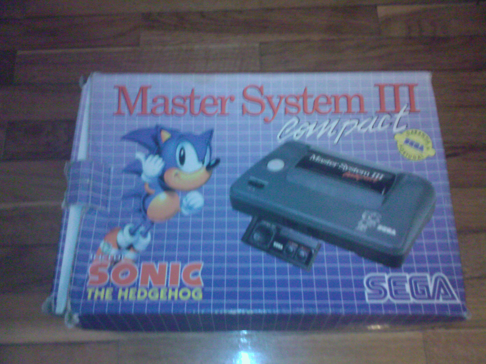 Caixa original da MSIII Compact com Sonic 1 na memóriaSegunda caixa da mesma consola, ainda no mercado BrasileiroNovamente a minha caixa da edição portuguesa deste modelo