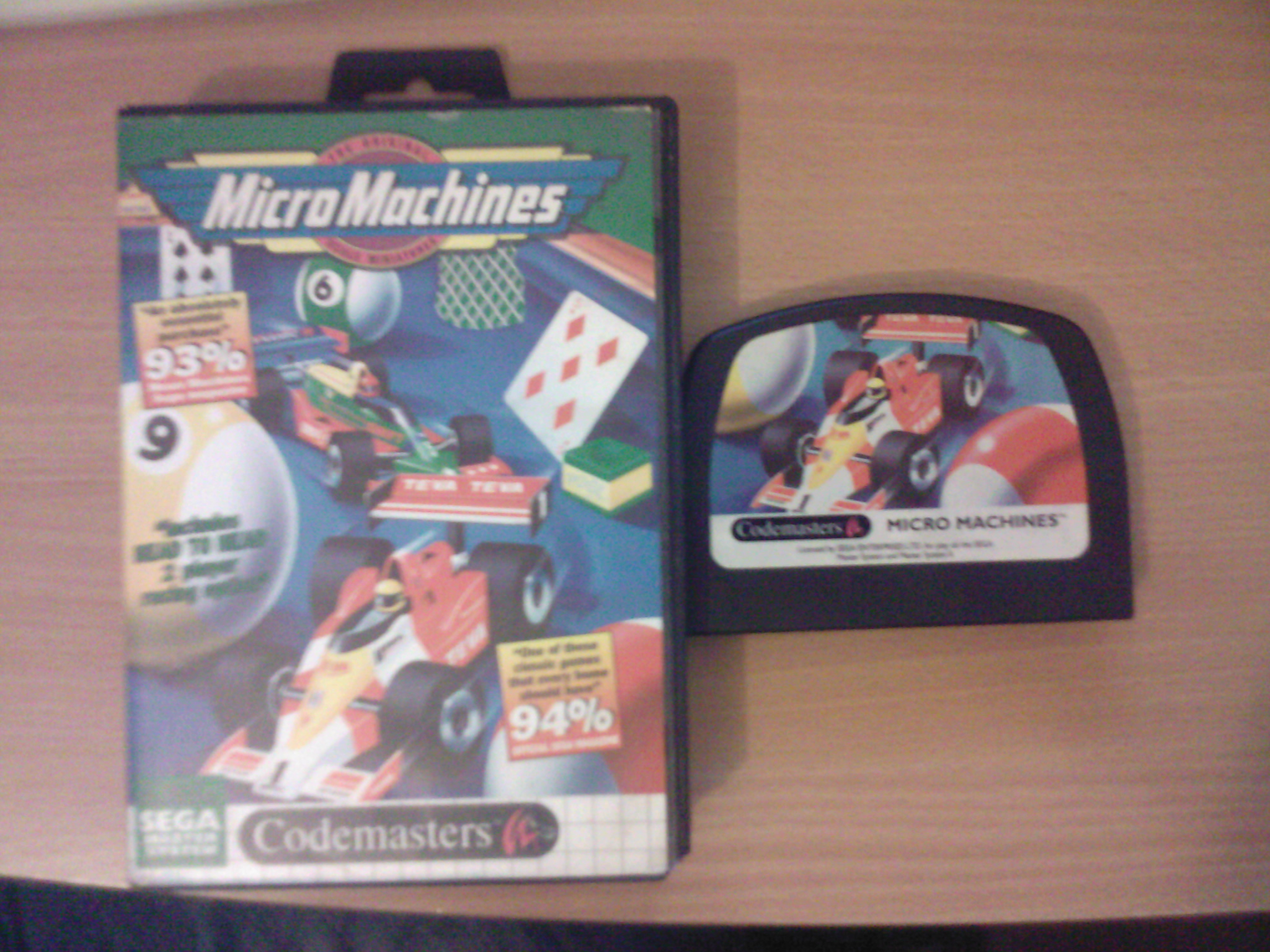 Não deixa de ser curioso ver o percurso que as várias produtoras foram tomando ao longo dos anos. A Codemasters, juntamente com a Rare/Ultimate e Psygnosis foi uma das minhas companhias europeias preferidas dos anos 90. Tendo começado o seu percurso nos anos 80 a desenvolver jogos “low budget” para o mercado dos computadores de mesa ZX Spectrum, Commodore 64, Amiga, entre outros, desde cedo se notaram pela qualidade dos seus títulos como por exemplo a série Dizzy. Nos anos 90 focaram-se nas consolas tendo lançado jogos de vários estilos, desde platformers, corrida, aventura, etc. Foram também reconhecidos pelas suas experiências em hardware, tendo lançado jogos para consolas em formato diferente do oficial (como o J-Cart da Mega Drive), bem como serem os inventores do infame Game Genie original da NES. Mais tarde focaram os seus talentos para desenvolver jogos de corrida de elevada qualidade, e assim permaneceram até hoje. O jogo a analisar hoje é a versão Sega Master System do primeiro jogo da série Micro Machines. A minha cópia chegou-me às mãos de parte incerta, certamente terá sido oferecida por algum amigo meu nos anos 90, sendo que lhe falta o manual.