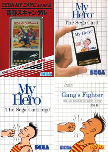 Estes tipo de jogos eram jogos bastante simples e mais baratos, visto os Cards terem uma capacidade de 32KB ou 256Kbit, conforme preferirem. Muitos deles eram jogos “à moda Atari”, sem um final, com os jogos sempre em loop, e o objectivo seria mesmo obter a melhor pontuação possível. My Hero cai nesta categoria, é um beat ‘em up sidescroller primitivo, com 3 níveis diferentes e um boss final, sendo que os níveis vão-se repetindo cada vez mais com dificuldade acrescida. My Hero é originário das arcades, mais precisamente do hardware System 1 da Sega, tendo sido desenvolvido pelo estúdio Coreland, mais tarde conhecido por Banpresto. A versão Arcade já por si é um jogo bastante simples com os mesmos 3 níveis a correr em loop, contudo com mais detalhe e 3 bosses para cada um dos níveis, enquanto que na versão Master System é sempre o mesmo.
