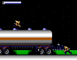 A nível de jogabilidade, como a maioria dos jogos 8 bit, os controlos são simples. Botão direccional para movimento, um botão de salto e um outro de ataque. Infelizmente a jogabilidade é má. Existem níveis que exigem saltos muito precisos, e isto não é nenhum Super Mario Bros, nem para lá caminha. Arnold quando está desarmado apenas pode dar murros, que têm um alcance muito limitado. O jogo comporta-se em parte como um beat’ em up no primeiro nível, onde Arnold só pode progredir no nível derrotando os inimigos todos, desarmado. Se ao menos tivesse mais golpes… O facto de as sprites também serem muito pequenas não ajuda nada. Graficamente o jogo está bem mais colorido do que a versão NES, devido à maior palete de cores existente na Master System e Game Gear. Infelizmente não colocaram as sprites maiores, o que é pena. Ao menos os cenários têm mais detalhe, mas também não esperem nada de especial, estou apenas a comparar com a versão original. Este jogo tem vários diálogos ao longo do mesmo, explicando a história, acompanhados de algumas imagens. A versão NES pareceu-me mais variada nestas imagens. O som não é nada bom. O chip sonoro standard da Master System sempre foi o seu calcanhar de aquiles e em jogos de 3ª categoria mais vale deixar a TV no mute.
