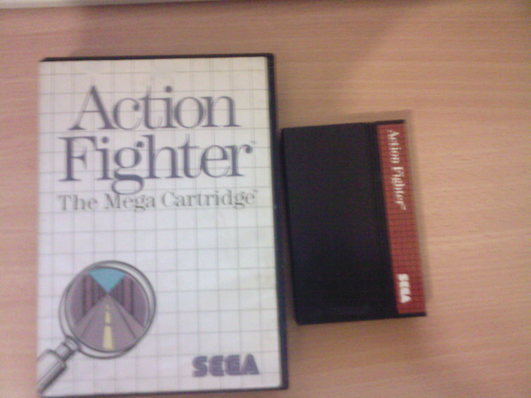 Tempo de mais um post rápido de um jogo do fundo da gaveta (do fundo mesmo!). Action Fighter é um shooter vertical da Sega saido originalmente em 1986 para a Arcade e Master System (e posteriormente para vários computadores da época). É claramente inspirado por outro jogo famoso um pouco mais antigo, o Spy Hunter da Midway, porém tem algumas diferenças notáveis. Este jogo chegou-me às mãos através de um pack de 7 jogos que comprei no miau.pt há uns anos, na altura tinha-me ficado por 5€ o pack completo, mais os respectivos portes de envio. Apenas lhe falta o manual, infelizmente.