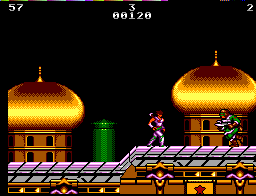 Mas o que realmente tornou Strider num sucesso foi a sua fantástica jogabilidade. Hiryu, armado com a sua espada “Falchion” é um guerreiro bastante ágil: Rápido a esquartejar os seus inimigos, bem como capaz de fazer saltos acrobáticos entre outras habilidades como escalar paredes e dependurar-se em tectos usando uma espécie de gancho metálico. Isto em 1989 era algo bastante eye-candy. Estas maravilhas para a versão Arcade e um ou outro port para plataformas +/- dentro da mesma “categoria”, já a versão Master System é bastante mais modesta neste aspecto, onde para apresentarem uns bons visuais sacrificaram na jogabilidade, tornando-a bem mais lenta. O número de inimigos na versão Master System também é bem menor, tornando este jogo algo mais fácil, até porque os próprios boss não são nada de especial nesta versão. Disse fácil? Esqueçam. Os níveis como habitual têm um tempo limite para serem concluídos, e nesta versão deixaram os limites mesmo muito justos, é habitual perderem-se algumas vidas à pala disso.