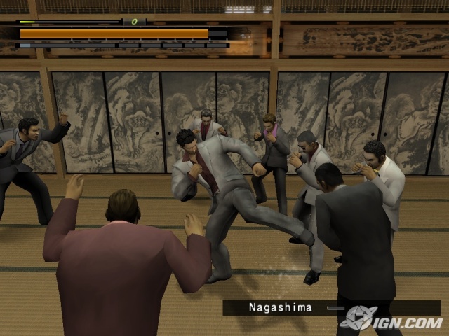 A história do jogo, sem entrar em grandes spoilers, tanto de Yakuza 1 como do 2, ocorre um ano depois dos acontecimentos do primeiro jogo, onde um determinado acontecimento provoca uma guerra entre o enfraquecido clã de Tojo devido aos acontecimentos de Yakuza 1 e a poderosa Omi Alliance, de Osaka, para além da existência de um suspeito grupo Coreano a atrapalhar os planos. Mais uma vez, o honrado ex-Yakuza Kiryu Kazuma se dispõe a ajudar o seu antigo clã e ir ao fundo dos problemas, contando com a ajuda de personagens antigas do primeiro jogo como o detective Date, bem como novas pessoas como a polícia Kaoru Sayama, de Osaka. Devo dizer que nos capítulos finais a história se estava a tornar bastante previsível, mas o capítulo final foi realmente impressionante para mim. A jogabilidade também se manteve practicamente intacta face ao primeiro jogo. Yakuza 2, tal como o primeiro é um híbrido entre um sand-box game, um beat ‘em up à antiga e um RPG. Isto pois o jogo decorre em (mais do que) uma área urbana, onde somos practicamene livres de fazer o que quisermos, seja prosseguir com a história, passear pela cidade e fazer side-missions, jogar mini-jogos, visitar lojas e restaurantes, engatar meninas, entre outros. Tem elementos de RPG como batalhas aleatórias onde ganhamos pontos de experiência que poderão ser usados para ganhar novas habilidades, bem como dinheiro que pode servir para comprar novas armas, equipamento ou outros items. A parte do beat ‘em up refere-se ao sistema de batalha.