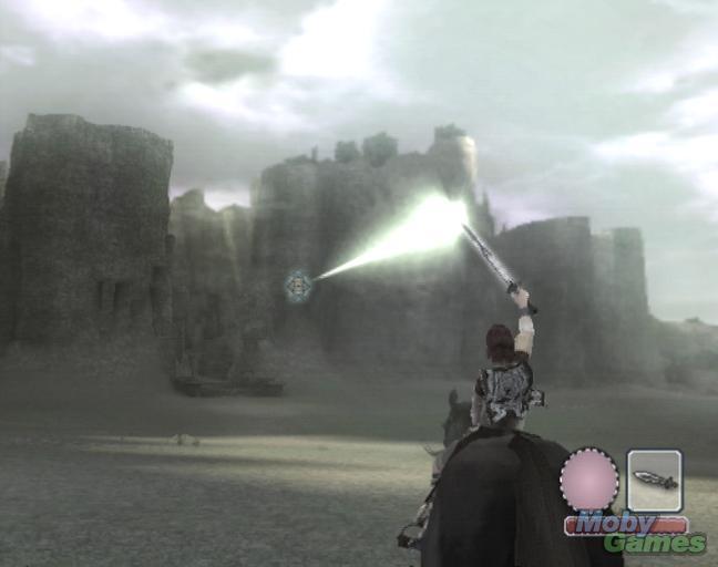 E sem mais somos deixados numa vasta e deserta região para a explorar, encontrar os colossos e derrotá-los. Como fazê-lo sem que andemos propriamente a vaguear sem rumo? A espada de Wander, quando empunhada ao alto em regiões solarengas, reflecte a luz, convergindo-a na direcção do próximo colosso que temos de defrontar. Nem sempre é assim tão simples, pois se seguirmos “cegamente” as indicações iremos dar a rumos sem saída, obrigando por vezes a contornar o mapa por outros caminhos. E o que temos disponível para mandar abaixo todas as 16 bestas gigantes? O cavalo Agro, um arco com flechas infinitas, a espada e a própria flexibilidade de Wander. O método para derrotar os colossos no fundo acaba por ser sempre o mesmo – saltar para cima deles, agarrar-se em regiões “peludas” dos Colossos, e ir escalando-os até chegar a regiões com pontos fracos, identificados por uns símbolos com um azul reluzente, e finalmente usar a espada para atingir estes pontos fracos. A estratégia para que nos possamos aproximar dos colossos e/ou revelar os seus pontos fracos é que vai mudando de colosso para colosso, sendo por vezes necessário utilizar o cavalo Agro ou os cenários envolventes. À semelhança de Ico, também há um certo minimalismo neste jogo, pois temos um mapa grande e variado para explorar, mas está completamente deserto, sem quaisquer inimigos ou NPCs menores. É o jogador, o seu cavalo, os colossos e um ou outro passarinho ou lagarto que vão surgindo pelo meio da flora.