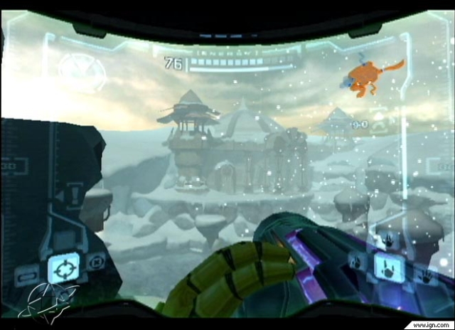 A motivação para defrontar estes gigantes passa sempre por descobrir estas estratégias que temos de adoptar, e assim que estamos “em cima” das bestas não temos a vida facilitada. Eles movem-se bastante, tentando-nos sacudir constantemente, pelo que temos de ter o timing certo para nos agarrarmos com todas as forças ao colosso, saber quando podemos tentar mover-nos de um sítio para o outro e atacar, é comum a personagem perder o equilíbrio e termos de repetir os passos anteriores para conseguirmos voltar a “agarrar” os gigantes. Por todas estas razões acabamos sempre por ter uma sensação recompensadora de “job well done” quando derrotamos um deles. Infelizmente nem tudo são rosas e a jogabilidade na minha opinião deixa muito a desejar. Controlar o cavalo é bastante frustrante, e em alguns Colossos onde temos de cavalgar a grande velocidade e ao mesmo tempo disparar flechas em direcções completamente diferentes, ou mesmo saltar do cavalo para o próprio colosso, foram situações que quase me fizeram perder a paciência. Lembro-me que na altura a crítica traçava bastantes paralelismos entre este jogo e o Zelda Twilight Princess, na medida em que Link também viajava por cenários enormes a com a sua égua Epona. Eu felizmente possuo os 2 e o jogo da Nintendo tem obviamente uma jogabilidade bastante superior neste aspecto. A própria movimentação de Wander também é um pouco lenta e “sloppy“. Para quem jogou Ico, o esquema de botões é quase o mesmo, tendo em conta que este jogo se foca bem mais no “grip” que Wander tem ao agarrar-se em objectos e nos próprios colossos.