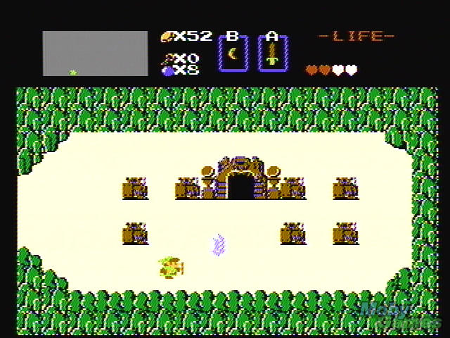 Passando para a jogabilidade, este é o campo em que TLoZ mais inovou nos idos de 1986, pelo menos no que diz respeito aos jogos de consola. Ao contrário da maioria dos jogos da época, em que o progresso dos mesmos era feito de uma forma linear, TLoZ apresentava algo diferente, dando uma maior liberdade aos jogadores de explorarem o jogo da maneira que quisessem. Tal como vários dos velhinhos RPGs dos computadores da altura, TLoZ é jogado numa perspectiva de “overhead”, colocando Link num relativamente grande mundo virtual para explorar. Logo quando começamos o jogo podemos entrar numa pequena caverna onde um velhote nos oferece uma espada para combater as “forças do mal”, e depois podemos explorar o mundo da maneira que quisermos. Claro que liberdade total para jogar o jogo não é total, existem áreas com inimigos bastante fortes que nos desencorajam a visitar nos primeiros tempos, outras áreas que são inacessíveis até obtermos uma série de items, etc. De qualquer das maneiras, a exploração é algo que é nativamente induzida ao jogador. Ao explorar o mapa do jogo veremos vários items que à primeira nos são impossíveis de alcançar, mas posteriormente, com a ajuda de um ou outro novo item conseguimos finalmente alcançá-lo. O mesmo diz respeito às dungeons, que já refiro daqui a pouco. O jogo está repleto de segredos, sejam items escondidos, lojas secretas onde podemos comprar poções que restauram a saúde de Link, ou upgrades ao seu equipamento, entre outros. Infelizmente só vim a experimentar este jogo através da emulação, já perto dos anos 2000. Nessa altura, na Internet, já existiam mapas completos e guias que explicavam como passar as fases mais chatas, ou onde os locais secretos se encontravam. Mas imagino o “buzz” que em plenos anos 80 tenha acontecido, com miúdos a trocar ideias e dicas entre si na escola, ou por inclusive correio. Curiosamente, Miyamoto tencionava precisamente que isso acontecesse, quando desenvolveu o jogo. A exploração e a troca de ideias entre os jogadores sempre esteve nos planos da Nintendo. Uma das razões que levou ao surgimento da Nintendo Power, a clássica revista da Nintendo, foi precisamente a demanda de dicas sobre Legend of Zelda, por parte de jogadores norte-americanos.