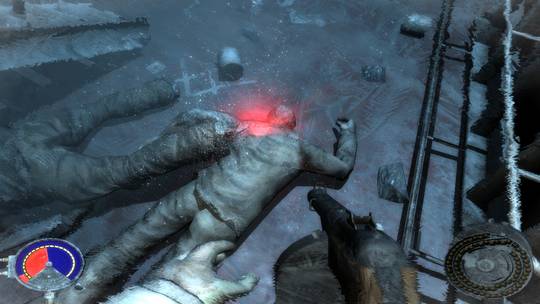 Ainda assim achei que o jogo teve algumas falhas. A história ficou demasiado segmentada, pareceu-me bastante interessante, mas muita coisa acabou por passar despercebida. Mas por outro lado, ao longo do jogo vamos descobrindo vários documentos que depois podem ser consultados numa galeria de arquivos, esses que contêm diversas outras pistas sobre os protagonistas, os mitos de Hanuda, a sua religião e outras pequenas surpresas como referências a sites de boatos que foram criados propositadamente para promover o jogo. Mas continuando com as falhas, Forbidden Siren é um jogo que recomendo vivamente que seja jogado com a ajuda de um guia. Isto porque muitas vezes é difícil sequer orientarmo-nos no cenário, devido ao nevoeiro constante e a um mapa com muito pouca utilidade. Para além do mais, é constante estarmos sem saber muito bem o que fazer ao certo para desbloquear os próximos níveis ou caminhos alternativos, pois os puzzles que temos de resolver nem sempre são evidentes. Outra falha está na interação de objectos, ou outras acções. Em vez de as mapearem para botões específicos, temos de abrir um menu e escolher a acção a desenvolver, seja recarregar uma arma, abrir uma porta, pedir a um NPC que se esconda, etc.