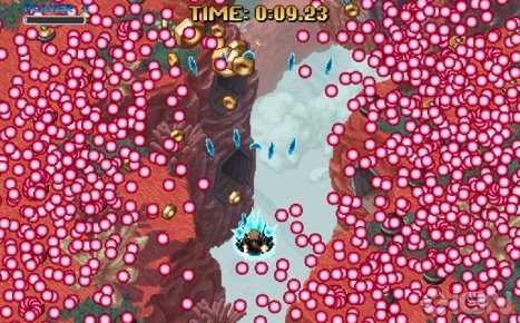 De resto o jogo é um shooter vertical, onde podemos destruir tudo o que mexa e não somos nós. Cada nave possui um disparo standard e um especial que por norma é mais poderoso. Estes modos de disparo é o que vai variando entre os 4 modelos de naves que podemos desbloquear, para além da sua agilidade. De resto, basta um tiro inimigo acertar no centro da nave para se perder uma vida. À medida em que vamos destruindo os inimigos, eles largam algumas quantidades de ouro que podemos (e devemos) apanhar sempre que possível. Para além de resultar em mais pontos, vamos preenchendo uma barrinha de energia. Quando a mesma estiver cheia, podemos desbloquear uma habilidade que é comum a todas as naves, o Vaunt. Quando activamos o Vaunt, gera-se um escudo À volta da nave que vai diminuindo de diâmetro com o tempo. Todas as balas que entram em contacto com o escudo desaparecem e convertem-se em pontos, sendo uma habilidade excelente para guardar em alturas mais apertadas. Contudo o escudo desaparece rapidamente, pelo que não podemos contar com esse bónus durante muito tempo. Para compensar, mesmo depois do escudo já se ter extinguido, ainda continuamos no modo Vaunt enquanto a tal barrinha de energia não se esvaziar completamente. Neste modo, os nossos disparos são mais poderosos que o habitual, os pontos que conseguimos fazer são multiplicados e podemos manter a barra de energia cheia ao continuar a coleccionar o ouro que conseguimos obter dos inimigos.