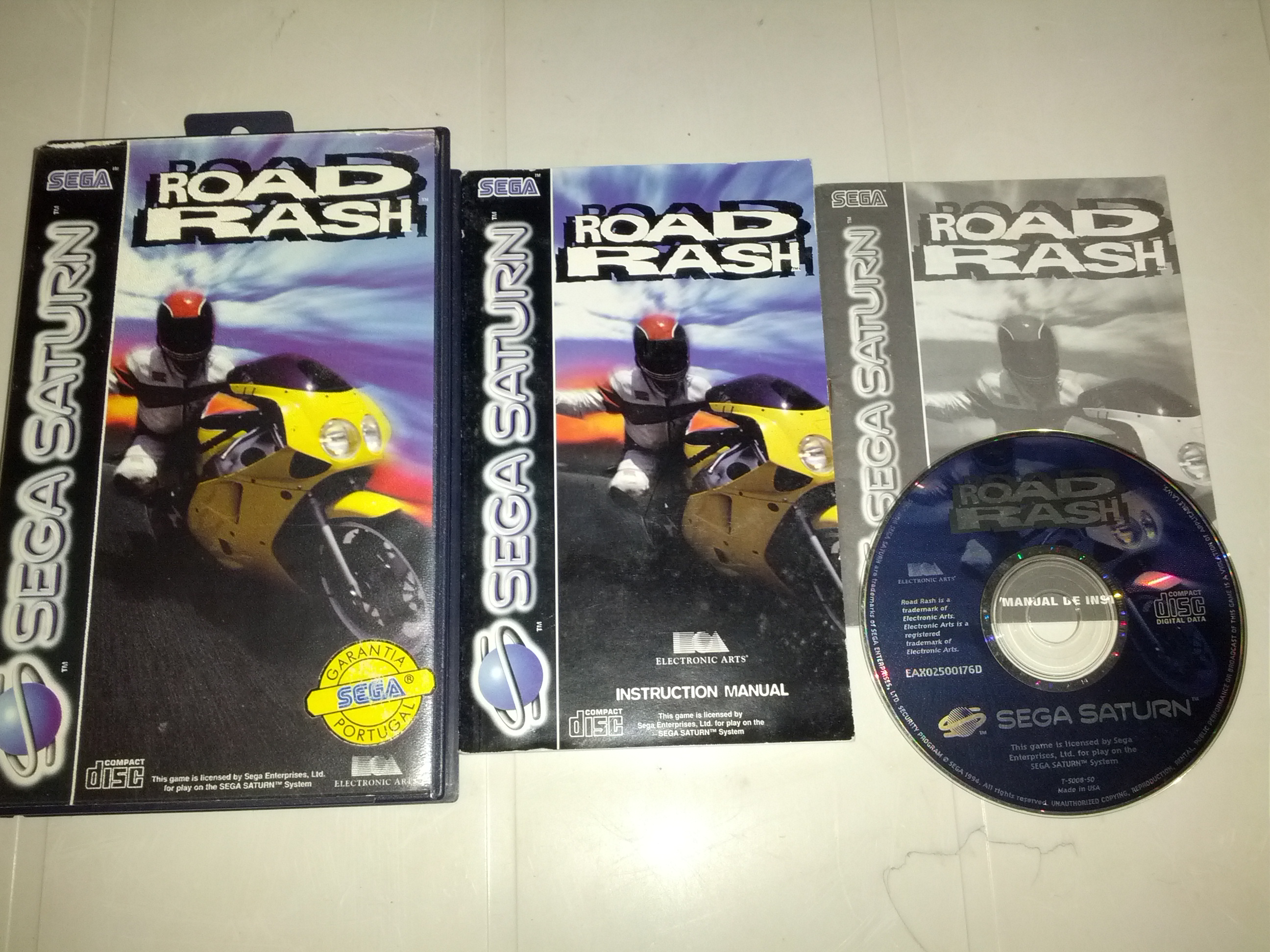 Road RashRoad Rash remete-me logo para 2 memórias: A atitude “cool” dos anos 90 e o tempo em que a Electronic Arts era uma empresa realmente criativa e um colosso bem respeitado por todos. A série tem as suas raízes na Mega Drive, com a temática de violentas corridas ilegais de moto por estradas estaduais dos EUA. O facto de podermos andar à pancada com outros condutores e também fugir à polícia era algo que tornava Road Rash num jogo único na sua altura. E como todas as séries de sucesso na Electronic Arts, foram lançadas imensas sequelas e conversões ao longo de toda a década de 90. Um desses lançamentos foi um remake do primeiro Road Rash para a 3DO, versão essa que acabou por ser lançada também noutras consolas, entre as quais a Sega Saturn. A minha cópia foi comprada algures em Janeiro/Fevereiro deste ano por 5€, na feira da Ladra em Lisboa.
