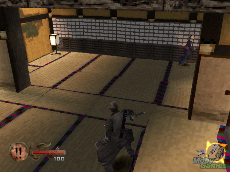 No entanto, tirando o facto do reduzido campo de visão, os níveis vão sendo grandinhos, sendo por vezes necessário um mapa para consultar de vez em quando a nossa posição. Graficamente é um jogo competente, no entanto a PS1 é capaz de fazer gráficos 3D com melhores texturas e modelos poligonais com mais detalhe. Ainda assim, a variedade de inimigos, armas e afins, são um ponto positivo para os visuais, assim como o detalhe dado nos cenários tipicamente japoneses feudais. Mas claro que não poderia deixar de referir o óbvio: o gore. Não há nada mais bonito que degolar a garganta de um bandido “indefeso” e ver o sangue a jorrar uns bons metros. OK, é desta que me internam num hospício… Mas a verdade é que este Tenchu é um jogo bem sangrento e na minha opinião faz todo o sentido que assim o seja, senão que piada teria andarmos a ter sempre o máximo de cuidado para não sermos descobertos pelos inimigos? Eye candies deste género são bem bons.