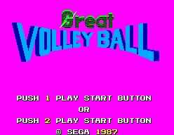 O Great Volley é um jogo algo primitivo como já tinha referido antes, mas ainda assim possui 3 modos de jogo distintos: Practice – que tal como o nome indica podemos praticar as nossas habilidades; Goodwill Match, um jogo amigável e por fim temos o Tournament Mode que também dispensa apresentações. Esses dois modos de jogo podem ser jogados por um ou 2 jogadores, onde podemos escolher uma de 8 equipas para representar. E ao contrário dos restantes jogos, a única diferença entre as equipas está mesmo na cor dos seus uniformes. Nos modos de jogo Goodwill ou Tournament, após seleccionarmos a equipa que queremos representar, podemos atribuir uma série de skill points nas categorias Service, Spike e Receive, e é aí que podemos customizar a nossa equipa mediante como bem acharmos. O segundo jogador pode fazer o mesmo, já se jogarmos contra o CPU, ele faz essas escolhas automaticamente. O jogo tem uma boa jogabilidade, tendo em conta a simplicidade do comando da Master System, mas não sendo eu um grande fã do desporto, confesso que não tenho grandes bases de comparação, mesmo dentro da própria consola. Graficamente é um jogo simples, porém colorido, e as músicas também não são nada de especial.