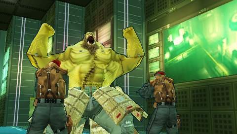 Mas a grande “inovação” está mesmo no modo 3D do jogo, apenas aproveitado para quem possuir o “Solid Eye”, uns óculos 3D no formato de caixa de cartão que para além de nos fazerem parecer completamente ridículos, permitiam ter um efeito 3D que, pelas impressões que fui recolhendo, não era tão bom. Para além do mais poderíamos ligar este MGA2 à PS2 com o Metal Gear Solid 3 Subsistence, com a oportunidade de transferir screenshots do jogo da PS2 para os ver em 3D na PSP. De resto graficamente é um jogo bonitinho, com os gráficos a mudarem da vertente mais “realista” do primeiro jogo para um efeito gráfico cel-shading bastante mais colorido e que sinceramente até que resultou muito bem. Para além do mais, a restante arte que poedmos ver nos diálogos está muito bem feita, como tem sido habitual na série. Infelizmente mais uma vez não existe voice acting, apenas alguns sons que as personagens vão soltando durante o jogo. As músicas quando existentes são também variadas e adequam-se bem aos ambientes em questão, sendo mais tensas quando devem ser ou mais calmas nos momentos mais aborrecidos (nos diálogos longos e rebuscados como de costume).