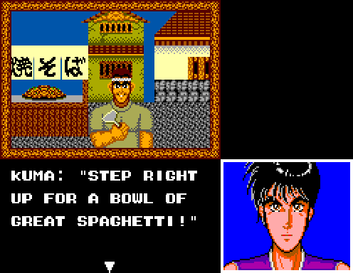 O jogo está então dividido em 2 modos de jogo distintos: as secções de sidescrollers, geralmente passadas quando queremos ir de uma localização à outra ou até em combates contra bosses, ou os segmentos de exploração que de acção têm muito pouco. Nos primeiros temos a fórmula tradicional de jogos como Contra ou Shinobi, onde andamos do ponto A ao ponto B, tentando destruir tudo o que mexa e ultrapassar alguns obstáculos de platforming. A diferença é que aqui em vez de termos uma metralhadora, ou armas brancas, Kane está munido dos seus poderes, lançando bolas de energia que podem até ser carregadas para um golpe mais devastador. Na parte de cima do ecrã temos 2 indicadores: força e energia. Os primeiros referem-se aos pontos de vida, se deixarmos que chegue a zero não é nada difícil adivinhar o que acontecerá. O outro é o medidor de energia, que vai sendo gasto à medida em que usamos os feitiços. Tanto uma como a outra podem ser restabelecidas ao apanhar orbs deixadas pelos inimigos e à medida em que vamos progredindo no jogo o seu limite máximo também pode ser aumentado. Mas falando nos feitiços, parte integral deste jogo, os mesmos podem ser consultados ao pressionar o botão de pausa. Desde o início do jogo que temos logo todos os feitiços à disposição (excepto um que gera uma password com os dados do jogo, para “save game”, que aprendemos pouco depois do início da nossa aventura), o que na minha opinião seria melhor se fossemos aprendendo ou desbloqueando esses feitiços gradualmente.