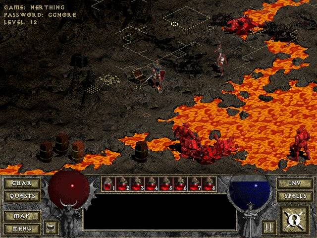 Confesso que a interface do jogo inicialmente me causou alguma confusão. A nossa party está dividida em 2 linhas de 2 lutadores, sendo que apenas os da frente conseguem usar golpes melee, pelo que é de bom senso deixar os slots traseiros para os mágicos ou arqueiros do grupo. O movimento é dado pelas teclas WASD, se bem que temos também as teclas Q e E para nos virarmos para a esquerda ou direita respectivamente. Depois voltando à nossa party, o inventário é curioso. Para além do seu retrato e barras de energia, vemos também as suas duas mãos, podendo equipá-los com items nas mesmas. Para atacar com algum item que alguém tenha equipado nas mãos basta clicar-lhe com o botão direito do rato. Contudo para os mágicos tal é diferente. Ao clicar com o botão direito nas suas mãos, vara mágica ou bola de cristal temos acesso a um conjunto de runas e é clicando em várias dessas runas que vamos disparando os diferentes feitiços. Em momentos de aflição é um esquema algo complicado, em especial se quisermos utilizar algum feitiço poderoso que necessite de 3 ou mais runas activas. Outra coisa interessante é a energia que vamos perdendo ao longo do jogo, tendo nós de nos alimentarmos depois, seja de alimentos que encontremos espalhados nos labirintos ou de carcaças deixadas pelos inimigos. E o jogo tem também um sistema de crafting que nos permite criar vários tipos de poções, usando para isso várias ervas ou outros items que podemos ir coleccionando.