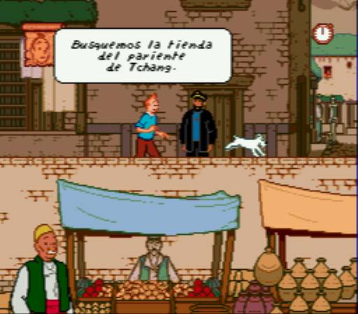 Isto porque temos 2 planos de jogo, o background e o foreground, podendo alternar livremente entre ambos, pelo menos nos níveis que o suportam. Ou seja, para além de nos desviarmos de “inimigos” ou obstáculos pelos métodos convencionais de saltar ou agachar, também podemos alternar entre planos, com Tintim a ter o zoom respectivo. Infelizmente a detecção de colisões não é a melhor e lá mais para a frente teremos alguns saltos mais complicaditos para fazer pois nem sempre distingue-se bem o que é plataforma e o que não é (isto para os níveis mais na neve). Outras vezes temos de procurar objectos, resgatar o Milú, ou ajudar algumas pessoas ao fazer certas tarefas, como carregar objectos de um lado para o outro, ou resolver pequenos puzzles. O problema é que cada nível tem um templo limite algo curto e nem sempre dá para explorar os níveis com a vontade que desejaríamos. Felizmente temos alguns items que podemos apanhar que tanto nos podem regenerar a vida, aumentar o tempo disponível para terminar o nível, ou mesmo serem vidas extra.