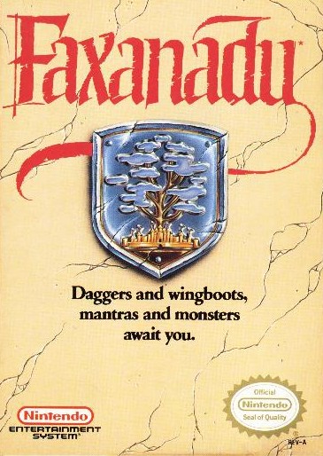 Faxanadu era um dos jogos que mais curiosidade tinha em jogar para a NES. Isto porque o jogo é um “parente” de um dos primeirísismos action RPGs japoneses, o Dragon Slayer da Falcom (os mesmos produtores de Ys) que saiu em 1984 se não estou em erro, para uma panóplia de computadores nipónicos. No ano seguinte, e pela mesma equipa saiu o Xanadu, um outro jogo que atingiu um sucesso considerável, de tal forma que decidiram lançar algo para a Famicom/NES, daí o nome de Faxanadu. No entanto este não é uma simples conversão do original, mas sim algo bem diferente. Este jogo foi comprado ha um ou dois meses atrás na cash converters de Alfragide por 5€, estando completo e em bom estado. Um óptimo negócio na minha opinião!