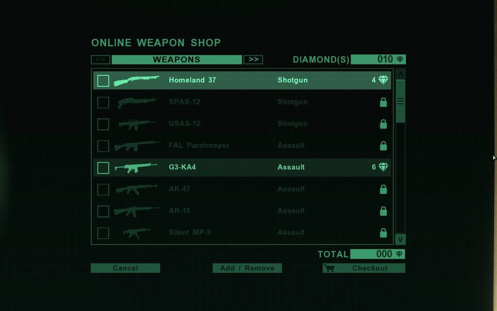 A jogabilidade é simples, este é um FPS em que podemos usar uma série de armas, tanto roubá-las aos cadáveres dos inimigos que limpamos o sebo, ou usar os diamantes que recebemos de recompensa (ou encontramos espalhados pelo mapa) para comprar armas e upgrades em várias “lojas” da especialidade. Apenas podemos carregar 3 tipos de armas diferentes ao mesmo tempo – primária como assault rifles, shotguns e afins, secundária como os revólveres e a especial como lança chamas ou rockets, ou morteiros. A diferença entre as armas dos inimigos e as que compramos está na sua durabilidade. As que vamos encontrando podem encravar, o que é algo muito bonito de acontecer quando estamos em pleno tiroteio no meio do caos, já as que compramos com os nossos diamantes suadinhos, são mais duráveis. O sistema de saúde consiste numa barra de vida dividida em 5 segmentos. Cada vez que sofremos dano, essa barra vai diminuindo. Mas ao passar algum tempo em segurança, existe alguma auto regeneração de vida, que nos regenera até a ao segmento mais próximo da barrinha em si. Para regenerar a vida na totalidade podemos usar uma seringa com uma substância qualquer… felizmente essas podem ser encontradas em diversos pontos chave no jogo.