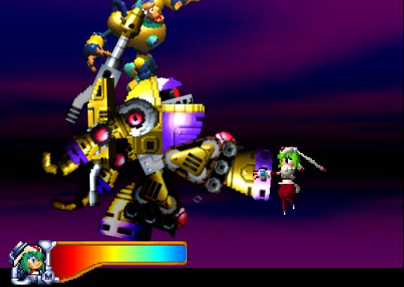 A primeira coisa que me vem à cabeça é que Mischief Makers é um jogo estranho, logo a começar na sua história. A protagonista é a Marina, uma robot doméstica criação do génio (e tarado) Professor Theo, que por sua vez acaba por ser raptado pelo imperador do planeta Clancer por razões desconhecidas. Até aqui tudo mais ou menos normal, mas depois quando vemos os habitantes de Clancer ficamos logo surpreendidos pela sua estranheza no seu design. Parecem bonecos da Michelin com caras tristes! O resto do jogo coloca-nos como Marina (e não só) no encalço de Theo, defrontando entretanto vários oponentes do Império que parecem ter levado alguma lavagem cerebral. Mas tudo com algum bom humor à mistura.