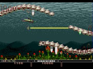 Inicialmente dispomos de uma de 4 naves biológicas para jogar, cada qual a assemelhar-se a um insecto diferente e também com armas especiais distintas. De resto, o Bio-Hazard Battle segue as mecânicas convencionais dos shmups. Um botão para os ataques normais, outro para os especiais, que são nada mais nada menos que ataques onde devemos deixar o botão pressionado até carregar o ataque completamente para depois o largar. Mas tal como R-Type podemos também apanhar uma nave “satélite”, que vai andando à nossa volta e dispara os seus próprios projécteis em simultâneo com os da nave principal, bem como consegue absorver dano. A maneira como esse satélite anda à nossa volta depende da forma como manejamos a nossa nave. Depois claro, temos os powerups habituais, com outros modos de disparo que poderemos usar.