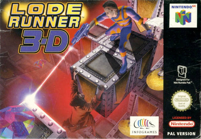 Hoje é tempo de escrever mais uma rapidinha daquelas mesmo curtinhas porque o tempo não dá para mais e sinceramente este nem foi um jogo que me tenha cativado tanto assim. O Lode Runner original é um clássico que gerou imensas conversões e sequelas para os mais variados sistemas. Uma delas foi esta incursão para uma perspectiva 3D, que veio a aumentar a complexidade dos seus puzzles e introduzir novas mecânicas de jogo. O meu exemplar foi comprado já há algum tempo atrás na feira da Ladra em Lisboa, num bundle de vários cartuchos da Nintendo 64 que foi comprado salvo erro por 15€.