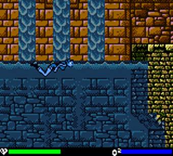 Voltando então à jogabilidade, podemos resumir este Tomb Raider no seguinte: explorar os níveis com muitas escaladas, saltos entre plataformas, procurar alavancas que nos abram outras passagens, ou procurar barras de dinamite para abrir certos caminhos. Pelo meio teremos de enfrentar vários animais ou bandidos, bem como inúmeras armadilhas, como projécteis a serem disparados de paredes, chão ou tectos, bem como espinhos a surgirem de todos os lados. Um pouco como nos Tomb Raider clássicos, portanto, mas tudo em 2D. Os controlos também replicam um pouco os clássicos, com a existência de um botão para acções, outro que serve para correr e agarrar/subir superfícies. O salto é que fica relegado para o D-Pad, pois não há botões para tudo. Sacar dos revólveres faz-se com o select, disparando depois com o action button. O start para além de pausar leva-nos para o ecrã de inventário, onde poderemos seleccionar itens como as barras de dinamite acima referidas, medkits que vamos encontrando ou alternar no tipo de munições para as pistolas de Lara. Sim, apenas podemos usar a mesma arma, cuja munição standard é infinita. As outras duas basicamente permitem usar rapid fire, ou são munições de maior calibre, capazes de causar mais dano. As pistolas de Lara são muito versáteis neste jogo!