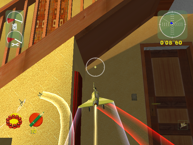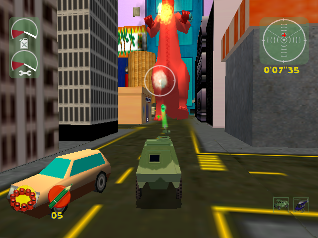 E poderemos então conduzir vários tipos de veículos terrestres e aéreos, desde autocarros e camiões militares que podem transportar brinquedos, incluindo os soldados de plástico que nos podem auxiliar a tomar posições inimigas, passando por vários tipos de aviões, helicópteros e carros militares equipados com armas. Por um lado temos metralhadoras e mísseis (que na verdade podem ser lápis de cor, tampas de canetas bic ou marcadores), bombas ou outras armas explosivas. Ao longo do jogo teremos vários power-ups que podemos apanhar que vão desde upgrades às armas, tornando-as mais potentes, ou simplesmente restaurar o combustível ou “vida” de cada veículo. É um jogo bastante divertido e original, embora o maior problema esteja nos seus controlos que não são os mais intuitivos. Mas isso sempre foi um problema da Dreamcast em jogos 3D, devido à falta de um segundo analógico. De resto, para além deste modo história que nos irá ocupar muitas horas, temos também uma vertente multiplayer que dará até 4 jogadores em split screen. Não cheguei a experimentar este modo de jogo, mas consiste em versões adaptadas de capture the flag e deathmatch, com brinquedos.