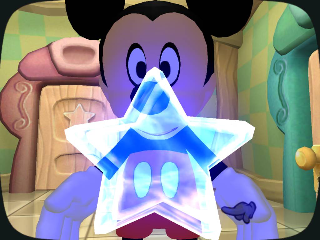 Dito isto, o resto do jogo é um simples point and click, onde o analógico servirá de rato apontando para onde nos devemos mover, interagir com objectos, abrir portas, etc. De forma a progredir no jogo teremos de encontrar e usar vários tipos de itens como uma lanterna para atravessar uma caverna escura, chaves para destrancar portas, entre outros. Muitas vezes encontramos estrelas e “star containers” que nos aumentam o número máximo de estrelas que podemos carregar. Estas servem para executar os tricks, algumas acções que em 90% envolvem partidas entre o fantasma e o mickey. Partidas essas que muitas vezes resultam em desbloquear algum item ou situação. Por vezes também iremos participar em mini-jogos, alguns rítimicos que fazem lembrar jogos como Dance Dance Revolution ou os futuros Guitar Heroes, outros mais tradicionais como descer uma encosta numa prancha de snowboard ou um minijogo onde temos de destruir barris de madeira, de uma forma muito semelhante a um certo Street Fighter II…