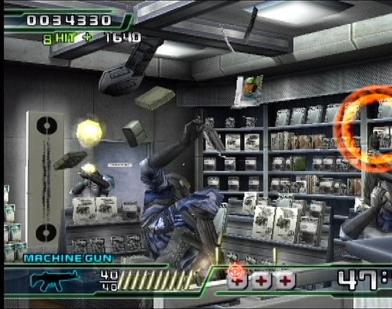 O modo de jogo principal é a conversão do modo arcade, onde começamos por escolher qual dos 3 níveis disponíveis queremos começar a aventura. Assim que os terminarmos aos 3, desbloqueamos o quarto e último nível com os bosses finais. Depois lá desbloqueamos uma outra campanha exclusiva para a versão PS2, que decorre 6 meses depois, numa outra zona fictícia de Londres e com os restantes membros do grupo terrorista a proclamar vingança. Este modo de jogo é mais difícil, com ainda mais inimigos em simultâneo no ecrã, sempre prontos a disparar. Aqui, mais que tudo, temos mesmo de ir usando o escudo de forma inteligente. Sabemos quando um inimigo nos vai acertar quando se aproxima um círculo vermelho da sua arma, obrigando-nos a agir rapidamente. Depois desbloqueamos ainda outros modos de jogo que nos permitem usar outras armas opcionais como é o caso das shotguns e também as habituais Crisis Missions, que consistem em pequenas missões com objectivos cada vez mais difíceis de atingir. Por fim, no que diz respeito ao multiplayer, é possível jogar com um amigo de forma cooperativa, mas desta vez sem recurso ao split screen.