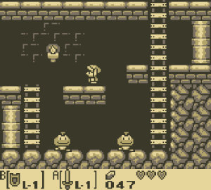 Existem também várias aldeias e personagens com as quais podemos falar, mini jogos que podemos participar, lojas que podemos visitar (e também roubar!), bem como algumas sidequests a completar. Em Link’s Awakening temos pela primeira vez a hipótese de participar numa sidequest de troca de itens, onde vamos trocando um item por outro ao longo de vários NPCs, até finalmente ter algo que nos faça falta! As dungeons assumem mecânicas de jogo também semelhantes às de Link to the Past, misturando a habilidade em combate, pois muitas vezes somos obrigados a defrontar todos os inimigos na sala para destrancar portas, e exploração e puzzle solving de forma a progredir. Apanhar mapas e bússolas continua a ser algo muito útil e depois temos os tais novos segmentos de plataformas que surgem ocasionalmente.