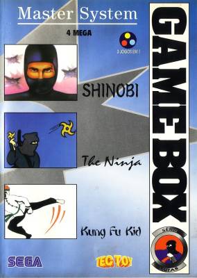 Continuando pelas rapidinhas, o artigo que cá trago hoje é uma interessante compilação de três jogos de acção, lançada originalmente e de forma exclusiva no mercado brasileiro, através da TecToy. A Ecofilmes no entanto lá deve ter importado umas quantas cópias dessa compilação, pois já a vi várias vezes à venda por cá. Na verdade, há já uns anos atrás que me tinham oferecido um cartucho solto desta compilação, que infelizmente tinha a label rasgada e problemas a arrancar um dos jogos, o Shinobi. Mas recentemente comprei um em caixa por 30€ na loja online Play ‘n Play. Foi mesmo naquele limite máximo de preço que tinha imposto para mim mesmo, e quando finalmente apareceu, não deixei escapar.