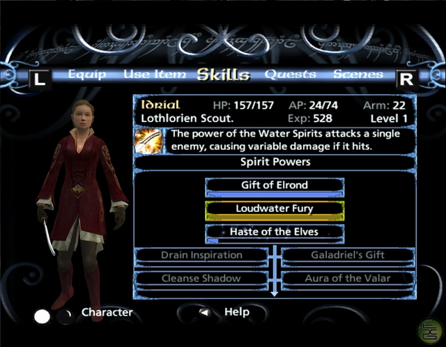 Quando soube que este jogo era um RPG fiquei bastante interessado, mas a primeira desilusão que tive ao jogá-lo foi verificar que na verdade isto não é propriamente uma história nova dentro do mesmo universo, mas sim um recontar dos eventos dos três filmes, através da perspectiva de um grupo diferente de personagens. Inicialmente começamos a aventura com Berethor, um soldado humano à procura de Boromir, que é salvo de um encontro com Nazguls por uma elfa chamada Idrial. Iremos então andar no encalço da Fellowship of the Ring, percorrendo os mesmos cenários, como as minas de Moria, a batalhas em Rohan e Helm’s Deep, Osgiliath ou Minas Tirith. Ocasionalmente vamos acabar mesmo por nos cruzar com personagens como Gandalf, Gimli ou Aragorn, mas pouco há a acrescentar à nossa história face à da história principal, o que é uma pena.