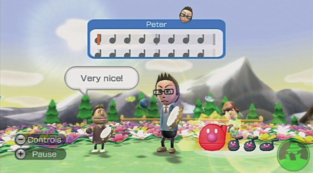 Os minijogos que falei acima são bastante simples. Num deles somos um maestro que tem de conduzir uma orquestra com a sua batuta. O outro, mais voltado para o multiplayer, é um jogo que já faz lembrar títulos mais tradicionais como o Guitar Hero, onde cada jogador deve tocar um sino (representados pelo wiimote e nunchuck) nos tempos certos e assim reproduzir uma pequena música. O outro é o Pitch Perfect e foi aquele que mais me interessou, pois coloca-nos desafios auditivos como identificar os timbres mais agudos ou graves, ou separar as diferentes notas de um acorde.