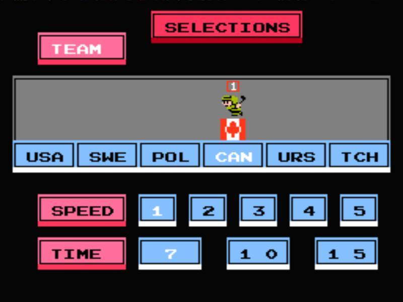 Este videojogo é muito simples, oferecendo-nos apenas 2 modos de jogo: uma partida amigável contra o CPU, ou então o tradicional versus para 2 jogadores. Temos à nossa disposição 8 equipas de nacionalidades que tipicamente jogam este desporto, como os Estados Unidos, Canadá, Suécia ou a antiga União Soviética. Existe no entanto alguma customização, pois para além do tempo que cada partida demora, podemos também alterar a nossa formação com mais ou menos jogadores magrinhos, de porte médio, ou fortes. Os jogadores magros são bastante rápidos porém possuem pouca capacidade física para remates fortes e duelos físicos, ao contrário dos jogadores mais gorditos, que são lentos mas raramente vão ao chão após levarem um encontrão. Os de porte médio são… médianos em todas as vertentes.