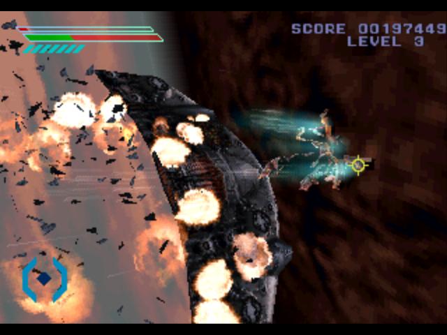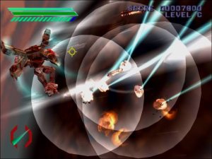 Avançando para a componente mais técnica, este é um jogo algo peculiar. Isto porque a sua representação tem um pouco de diferentes coisas: tal como muitos shooters 3D desta época, temos ainda algumas sprites 2D, nomeadamente alguns inimigos e os próprios power-ups. Outros objectos, incluindo o mecha, são representados em 3D poligonal. A maior parte dos cenários no entanto são representados por voxels. Pensem nos voxels como pixels em 3D e o resultado é um pouco estranho, no mínimo. Mas interessante! Nos níveis sub-aquáticos, aquele nevoeiro característico de jogos 3D rudimentares dessa época acaba por fazer todo o sentido. No que diz respeito aos efeitos sonoros e música não há nada de mal a apontar. As músicas em si são algo inspiradas em música electrónica, o que até acaba por soar bem tendo em conta o conceito do jogo.