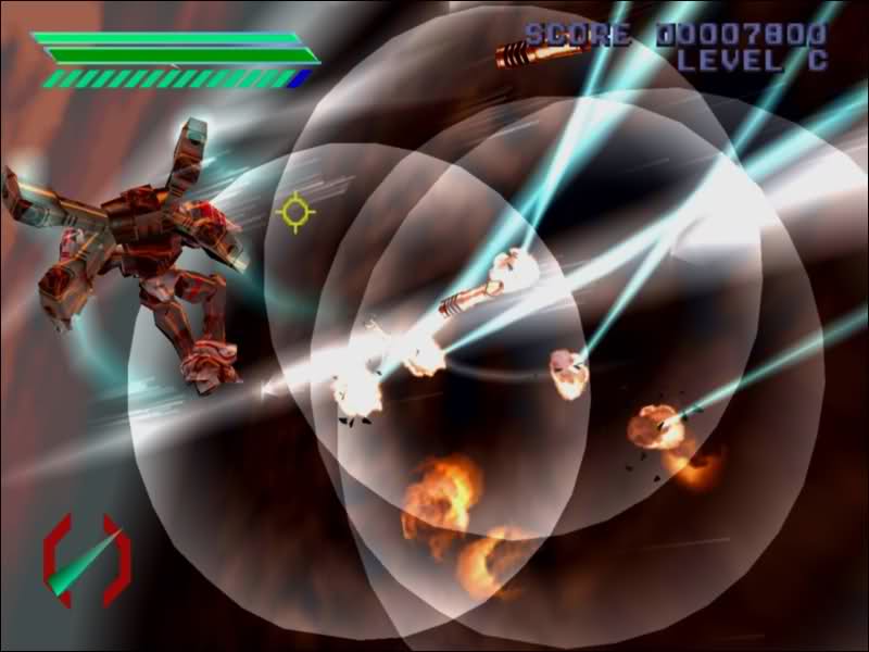 Para isso estamos munidos de um mecha muito particular, até porque é anfíbio. Logo na primeira missão, infiltrar o território inimigo, jogamos no fundo dos oceanos, passando a jogar em terra nalgumas das missões seguintes. A nível de armamento e características do mecha, nada muda em solo ou água, a não ser as capacidades de movimento e a maior inércia nos combates subaquáticos. De resto estamos equipados com uma espécie de metralhadora com munição inifinita, mas poderemos encontrar outro tipo de munições e power-ups, a começar pelo rapid-fire e balas mais poderosas, bem como mísseis e bombas que podem também ser usadas para destruir algumas infrastruturas ou outras armadilhas.