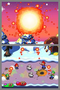 A nível de narrativa, tal como o anterior este é um jogo com uma história agradável e repleta de boa disposição. Acho que fizeram um bom papel ao representar os aliens dos Shroobs bem como a Princess Shroob. Por vezes o plot parece bem sério e ameaçador para um jogo da série Mario! Por outro lado, a história está também repleta de bom humor, o que também nos motiva a continuar a jogar “só mais um bocadinho”.