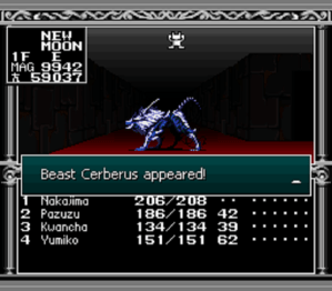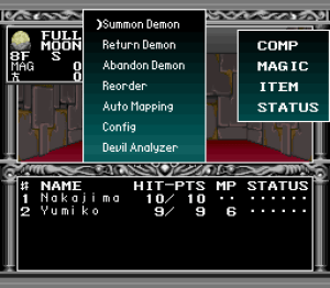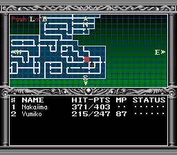 A nível de mecânicas de jogo, o mesmo herda todas as mecânicas da sua prequela. Mais uma vez controlamos um herói e uma heroina com capacidade de invocar magias, teremos muitos mais demónios para descobrir, fundir e tentar recrutar para a nossa party. De novidades é que agora temos um overworld para explorar, com várias cidades para descobrir, tanto no Japão, como no próprio Inferno. Aqui o jogo leva-nos para uma perspectiva aérea típica de outros RPGs da época, com a exploração das dungeons a dar-se uma vez mais na primeira pessoa. Temos na mesma as fases da Lua a ter em conta, o grinding, e o mesmo sistema de combate do seu predecessor. De resto, tal como o primeiro, este possui também uma funcionalidade de automapping, mas o que eu não referi atrás foi que esta funcionalidade, apesar de muito benvinda, é também um pouco confusa visto que o mapa roda consoante o ponto cardeal para o qual nós estamos virados (edit: fui recentemente avisado por um leitor que podemos fixar a orientação do mapa com uma opção própria). Também existem partes no jogo com “nevoeiro” onde navegamos um pouco às cegas, ou outras onde equipamentos electrónicos não funcionam. Isto porque consultamos o mapa numa espécie de computador portátil, que por sua vez também dá jeito para obter detalhes dos inimigos que combatemos.