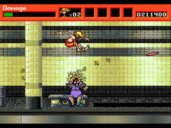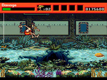 Na sua essência, este jogo é um sidescroller/plataformas, com um bocadinho de Metroid pelo meio visto que teremos de explorar o cenário e fazer algum backtracking, seja para procurar itens, falar com alguns NPCs e por aí fora. Temos um botão para saltar e um outro para atacar, o que pode ser um nadinha frustrante visto que o nosso ataque principal é um pontapé quando alguns dos nossos inimigos estão equipados com metralhadoras e não têm medo de as usar. O sistema de saúde/vidas é interessante. Inicialmente dispomos 3 vidas que são identificadas com 3 caras humanas no canto superior direito do ecrã. Cada vez que sofremos dano, uma das caras vai-se transformando em caveira e assim que estiver completamente transformada, é como se perdesse uma vida e o dano que vamos recebendo começa a deformar a cara seguinte. Entretanto por vezes lá vemos umas bolhas de ar a percorrer o ecrã e sempre que as tocamos, a nossa vida vai regenerando. Entretanto, se já tivermos uma ou mais caveiras completes, essas não podem ser regeneradas, são mesmo vidas perdidas.