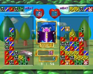 Este é um puzzle game daqueles de combinar blocos coloridos, misturando diferentes animais e comida. Por exemplo, os blocos azuis podem ser pequenos ossos ou a figura de um cão, os verdes são canas de bambu e pandas, os amarelos são macacos e bananas e os vermelhos são coelhos e cenouras. A ideia é então ir juntando os animais e a comida da mesma cor, de forma a que os animais comam os blocos da mesma cor que lhes estejam adjacentes. Vão caindo 2 blocos coloridos de cada vez, sendo que nos cabe a nós escolher como os vamos colocar no ecrã. À medida em que vamos fazendo alguns blocos desaparecer, a gravidade trata de puxar os restantes para baixo, podendo desencadear algumas reacções em cadeia que como habitual nos dão mais pontos e também enviam muito lixo para o ecrã do adversário. Como sempre, em jogos deste género o primeiro que encher o ecrã de blocos perde e na vertente arcade vamos jogando contra vários oponentes controlados pelo CPU, ou contra oponentes humanos na vertente multiplayer. Para além do modo arcade que nos coloca frente a frente com algumas personagens pré-definidas, temos também o Ranking Mode, onde o objectivo é o de “limpar” o máximo de níveis possível, sendo que o tempo que demoramos e o número de reacções em cadeia contam bastante para a pontuação final.
