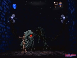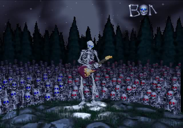 Após 2 ou 3 níveis de plataformas no cemitério, onde vamos enfrentando vários esqueletos, acabamos por finalmente escapar para uma floresta, onde encontramos uma cabana com um velhote cego, a tocar ritmos de blues / rock. É cego mas pressente a nossa presença, convida-nos a entrar e dá-nos uma guitarra e quando voltamos à acção estamos completamente rodeados de esqueletos! Qual a saída? Tocar um solo de guitarra até que os consigamos converter a todos para o nosso lado! Estão a ver a criatividade?? As coisas vão ficando ainda mais estranhas, com vários níveis em FMV, solos de bateria, uma viagem ao reino subterrâneo de Lilliput, onde temos de salvar os seus pequenos habitantes de serem raptados por aranhas gigantes entre muitas outras bizarrices. Já para não falar no nível em que temos de combater um esqueleto cyborg… a contar piadas!