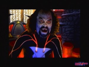 O solo de bateria já é mais simples, sendo que temos 4 kits de baterias em cada uma das direcções. Aqui o jogo é mais um “Simon Says”, pois cada vez que uma das baterias piscar a vermelho, basta manter o botão direccional pressionado nessa direcção até que uma outra bateria comece a piscar, obrigando-nos a mudar. Outro nível que ganharia muito mais se tivesse outra abordagem é o do stand up comedy. Aqui vamos tendo de contar anedotas compostas por 3 frases, sendo que cada frase está assossiada a um botão diferente. Enquanto estamos a contar a anedota, temos um esqueleto cyborg a andar na nossa direcção, quando acertamos nas 3 frases pela ordem certa e contamos a anedota, o monstro anda uma série de passos para trás, permitindo-nos assim a progredir (lentamente) no nível. Creio que seria muito mais interessante se houvesse um menu de selecção de frases no ecrã e iamos construindo a anedota à medida. Assim é mais uma vez um esquema de tentativa erro que nos pode sair caro.