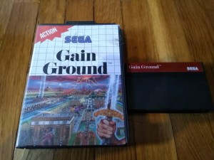 Gain Ground é um jogo que foi desenvolvido pela Sega originalmente para as arcades no final da década de 80. Era um jogo de acção numa perspectiva top-down, mas com alguns elementos de estratégia que nos faziam pensar um pouco, para além de ser necessário os habituais reflexos rápidos. Naturalmente que conversões para as suas consolas não se fizeram esperar e foi o que acabou por acontecer, tanto na Mega Drive, como na Master System, versão que cá trago hoje. A minha cópia foi comprada algures durante o mês de Março, numa Cash Converters de Lisboa, por 5,5€.