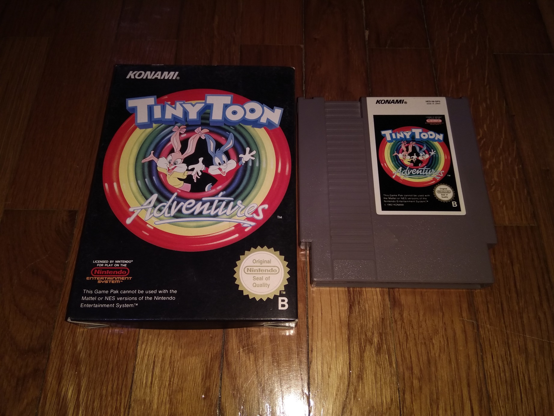 Já cá trouxe vários jogos da série televisiva Tiny Toon Adventures, todos eles desenvolvidos pela Konami, mas o primeiro de todos foi mesmo este lançamento para a NES. Tal como muitas das suas sequelas, este é também um competente jogo de plataformas. O cartucho foi comprado a um particular algures durante o passado mês de Maio e custou-me 10€. A caixa já me tinham oferecido algures perto do Natal de 2016.