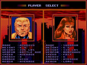Ora tal como referi acima, este jogo é uma espécie de X-Men mas ao contrário. O mesmo decorre num futuro pós apocalíptico, onde após tanta exposição nuclear da guerra, todos os humanos sobreviventes acabaram por se transformar em mutantes. O Professor Xavier lá do sítio (aqui com o nome de Kildare) é um cyborg programado para devolver a humanidade aos mutantes, onde recruta 6 mutantes para a sua equipa de super heróis e retorna-os a humanos perfeitamente normais, daí o nome Ex-Mutants. Confesso que é um conceito um pouco estranho, mas original. O maior vilão lá do sítio é uma lesma gigante chamada Sluggo que rapta quase todos os Ex-Mutants. Quase todos, execpto Shannon e Ackroyd, que são os heróis que podemos escolher para começar a aventura. Ao longo do jogo vamos atravessando várias áreas urbanas em ruínas, repletas de mutantes e outras armadilhas, salvar os nossos amigos e ir derrotando os minions de Sluggo pelo caminho.