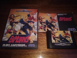 Voltando às rapidinhas, o jogo que cá trago agora é mais um jogo de acção para a Mega Drive, o Ex-Mutants. É um jogo baseado numa comic que sinceramente não conhecia, mas que é uma espécie de antítese dos X-Men, pois também está relacionada com mutantes, mas não da mesma forma. O meu exemplar foi-me oferecido por um particular algures em Junho passado. É um cartucho apenas, mas dá para jogar e assim que possível tento trocar por uma versão mais completa. Edit: Recentemente fiz uma troca com um amigo meu que consegui ficar com o jogo completo.