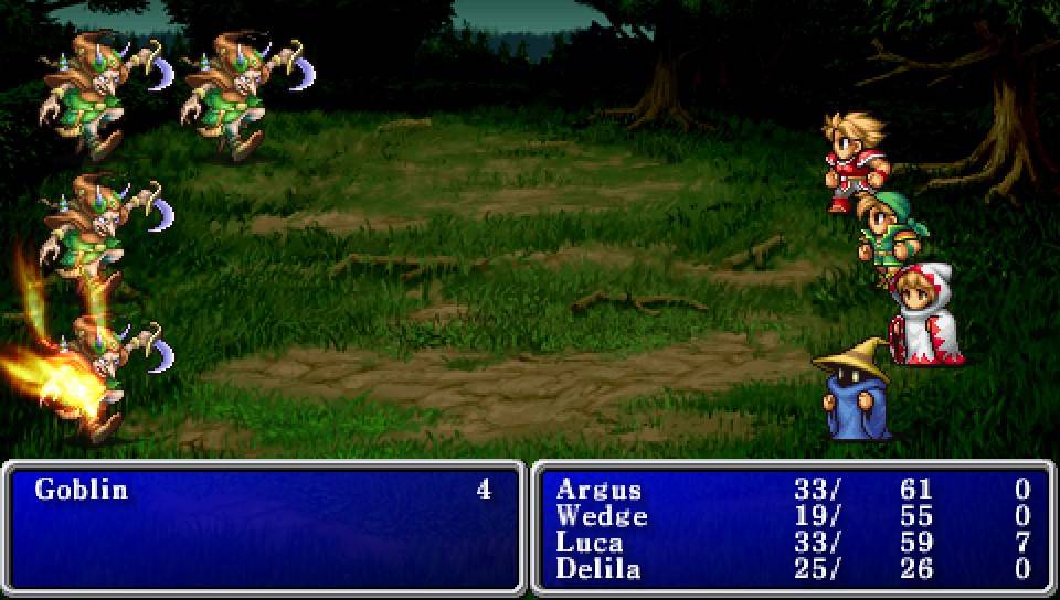 No que diz respeito à jogabilidade, esta é relativamente simples, pois este é um RPG à moda antiga: batalhas aleatórias e por turnos! O que temos de não linear está precisamente no início do jogo, onde podemos construir a nossa party de 4 personagens, escolhendo livremente várias classes. Inicialmente dispomos de Fighters, Thiefs (mais ágeis), Black Belts (especializados em combate corpo a corpo) e temos depois as classes mágicas: White Mages (especializados em magia defensiva/regenerativa), Black Mages (especializados em magia ofensiva ou que enfraqueça os adversários) e os Red Mages, que podem usar um pouco de ambas as vertentes, sem nunca masterizarem um dos estilos. Posteriormente pderemos evoluir estas classes, dotando as personagens da capacidade de aprenderem novas habilidades e usar equipamento que previamente estava barrado para a a sua classe.