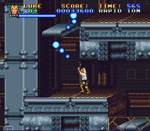 Este é um jogo de acção/plataformas, que nos faz lembrar títulos como Contra (se bem que menos intensos), com algumas secções onde conduzimos alguns veículos como um Landspeeder ou uma X-Wing no famoso assalto à Death Star. Inicialmente podemos jogar apenas com o Luke Skywalker, mas mais para a frente poderemos jogar também com Chewbacca ou Han Solo. Não há grande mudança na jogabilidade entre as personagens, uns são mais ágeis que outros, ou possuem mais resistência físíca e todos possuem mais ou menos o mesmo tipo de habilidades. A grande excepção está no Luke Skywalker, que pode alternar entre a sua pistola e sabre de luz, após o seu encontro com Obi-Wan Kenobi. Todos possuem uma arma de fogo, se bem que ao longo do jogo poderemos apanhar vários power ups que nos aumentam o poder de fogo. O melhor é que esses power-ups transitam de nível para nível, mas perdem-se se perdermos alguma vida entretanto. Mas temos muitos outros itens que podemos apanhar, desde extensões do tempo limite para terminar o nível, multiplicadores de pontos, invencibilidade temporária ou sabres de luz que servem para extender a nossa barra de energia.