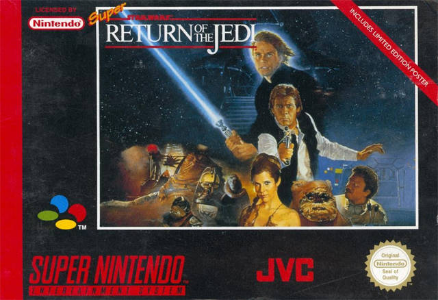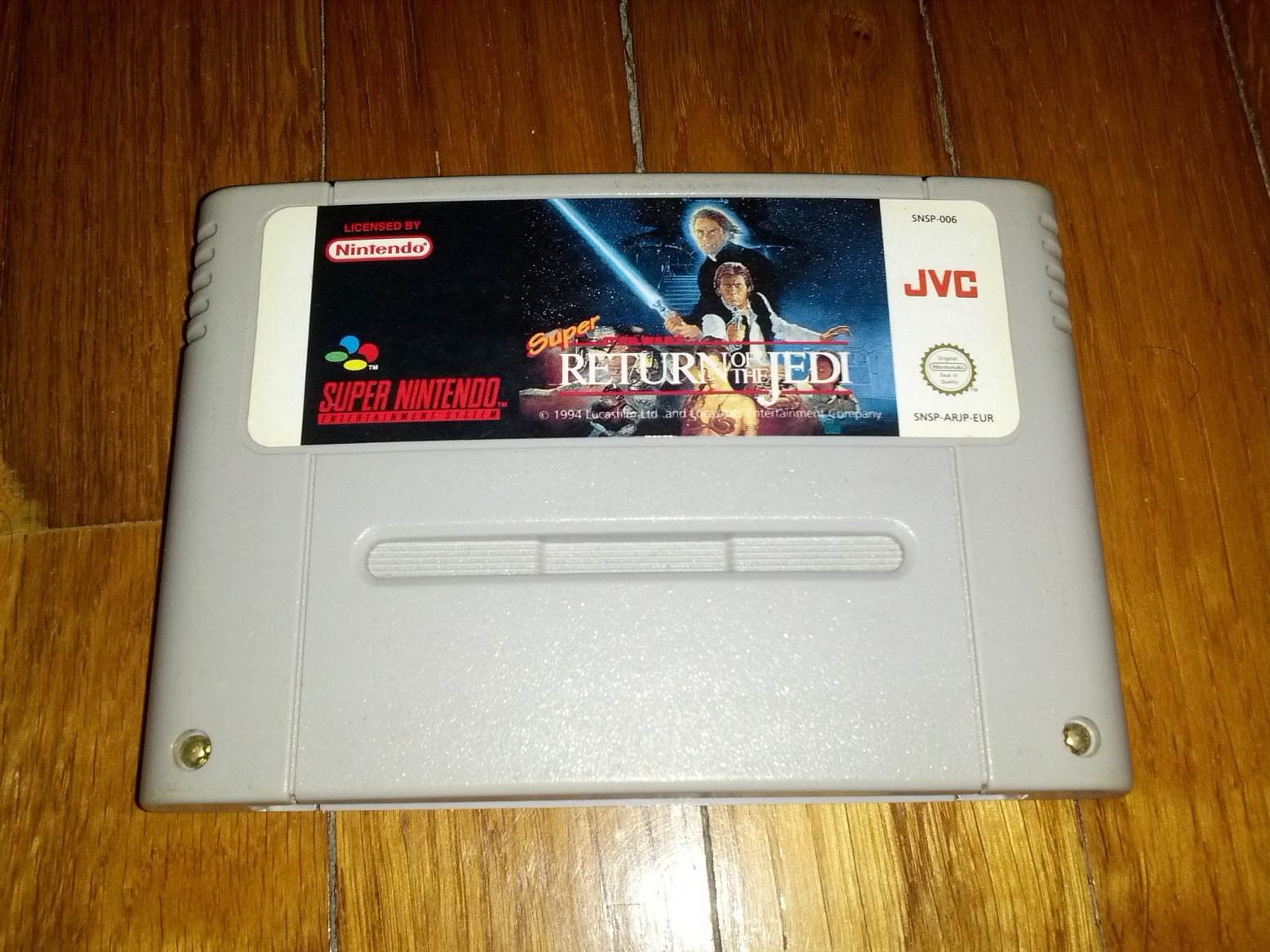 Continuando na saga dos Super Star Wars para a Super Nintendo, trago-vos agora cá o último capítulo, focado no Episódio VI da trilogia original, Return of the Jedi. Tal como os seus predecessores este é um muito interessante jogo de acção/plataformas 2D, com alguns momentos onde poderemos conduzir alguns veículos da série. E é engraçado ver como os três jogos evoluiram entre si, pois este introduz uma série de novidades. O meu exemplar foi comprado numa feira de velharias há uns anos atrás, veio num bundle de cartuchos de SNES e Nintendo 64 que comprei a meias com um amigo. Basicamente foram pouco mais de 30 cartuchos para ambas as plataformas, e pagamos 30€, um óptimo negócio.