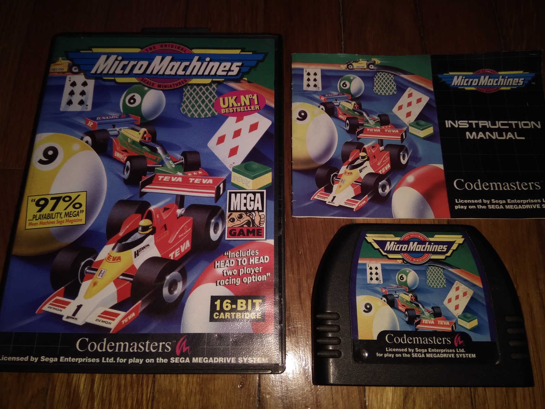 Vamos para mais uma rapidinha, visitando a Mega Drive e mais um dos seus clássicos. Com as suas origens em 1991 para a NES, Micro Machines foi um excelente e viciante jogo de corridas produzido pelo estúdio britânico Codemasters, tendo chegado às consolas da Sega só em 1993. E se por um lado as versões Master System e Game Gear perderam algum conteúdo do jogo original da NES (por razões que não faço ideia), por outro lado a jogabilidade mantém-se idêntica (e ainda bem!). O meu exemplar foi comprado a um particular em Dezembro por 5€.