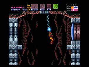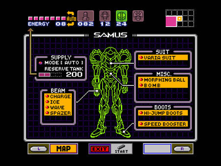 Ao aterrarmos no planeta Zebes, começamos por explorar as ruínas que deixamos na nossa primeira visita, e uma vez mais começamos por encontrar os primeiros power ups: mísseis e a morph ball, que por sua vez nos permite enrolar numa esfera e rebolar por passagens estreitas. A premissa de Metroid mantém-se, portanto. Temos um mundo aberto para explorar e revisitar vezes sem conta à medida que vamos encontrando outros power ups que nos dão novas habilidades e que por sua vez nos permitem alcançar zonas que previamente seriam inacessíveis. Existem também inúmeras passagens secretas que poderemos descobrir, que geralmente nos levam a outros power ups bónus, como expansões ao número máximo de mísseis, super mísseis e super bombas que podemos carregar (estes dois últimos são novidade), bem como Energy Tanks que nos expandem a barra de energia. Outra das novidades introduzidas pelo Super Metroid está no sistema de auto mapping, bem como algumas salas que nos permitem descarregar mapas (obviamente sem as passagens secretas) das áreas que vamos explorando.